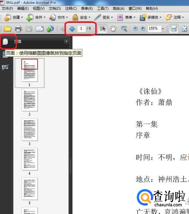 下载安装完成之后,用该软件打开PDF文档,如图所示,点击图中的图标,就可以打开缩略图。