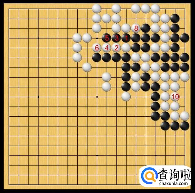 白棋随即在白10处提掉了右下角底边黑三子,化解了黑棋的打吃。如图所示。