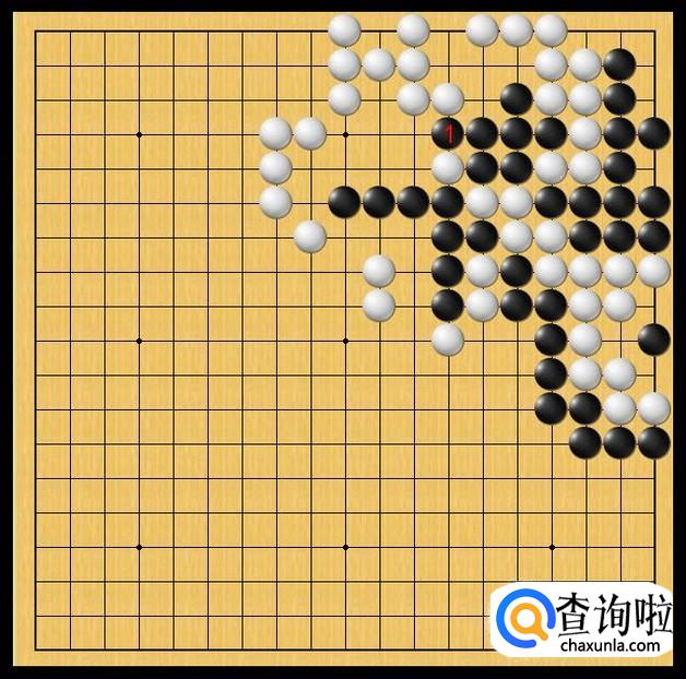 黑方先行,由于该局面环环相扣,黑棋决定先打吃中腹白子,于是,黑棋在黑1处落子,黑棋企图通过打吃中腹的白子使得黑棋在中腹成功相连。如图所示。