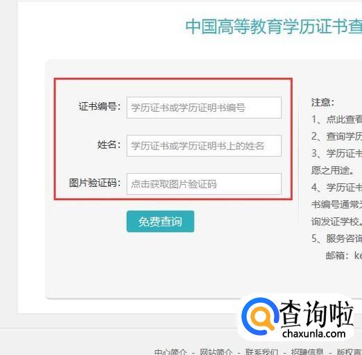 进入之后,输入证书的相关信息,点击“免费查询”即可,如图所示。