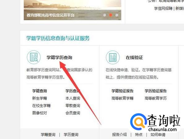 进入之后,点击“学籍学历查询”,进入下一页面,如图所示。