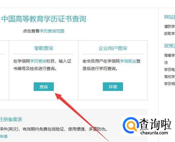进入之后,在零散查询位置,点击“查询”,进入下一页面,如图所示。