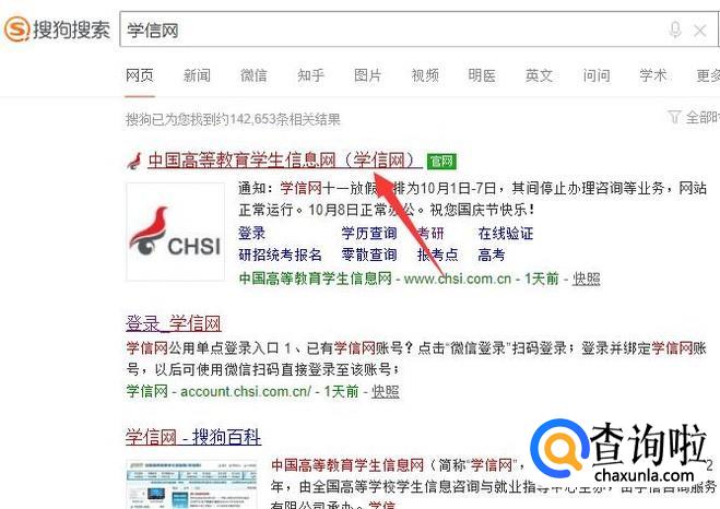 进入之后,搜索“学信网”,点击并进入官网,如图所示。