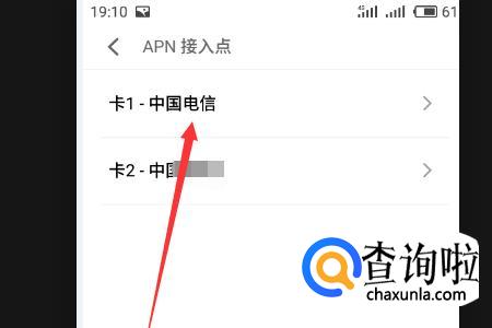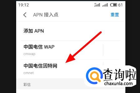 然后我们在弹出来的窗口中点击打开APN接入点中的“中国电信”。