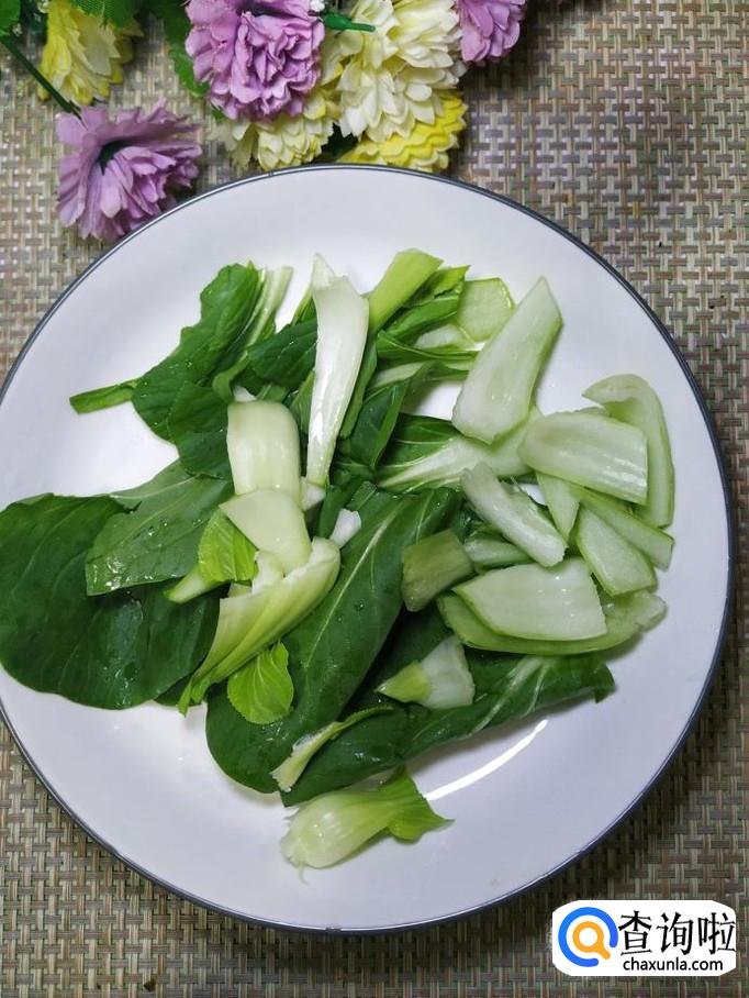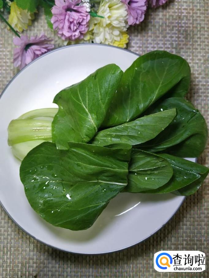准备适量青菜,洗净后用手掰开,放入盘中备用。