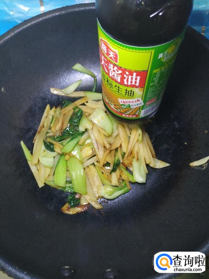 加入适量生抽,增亮色泽,稍微加一些清水,防止粘锅,