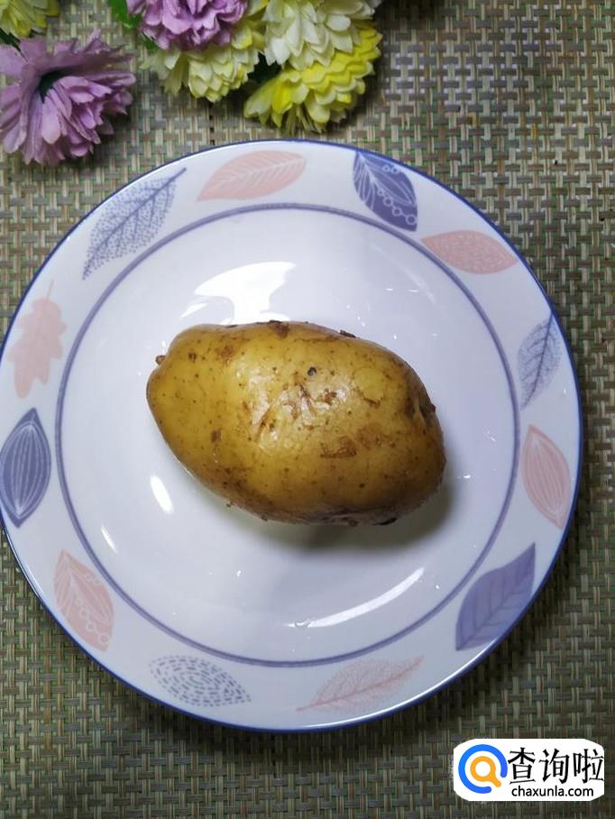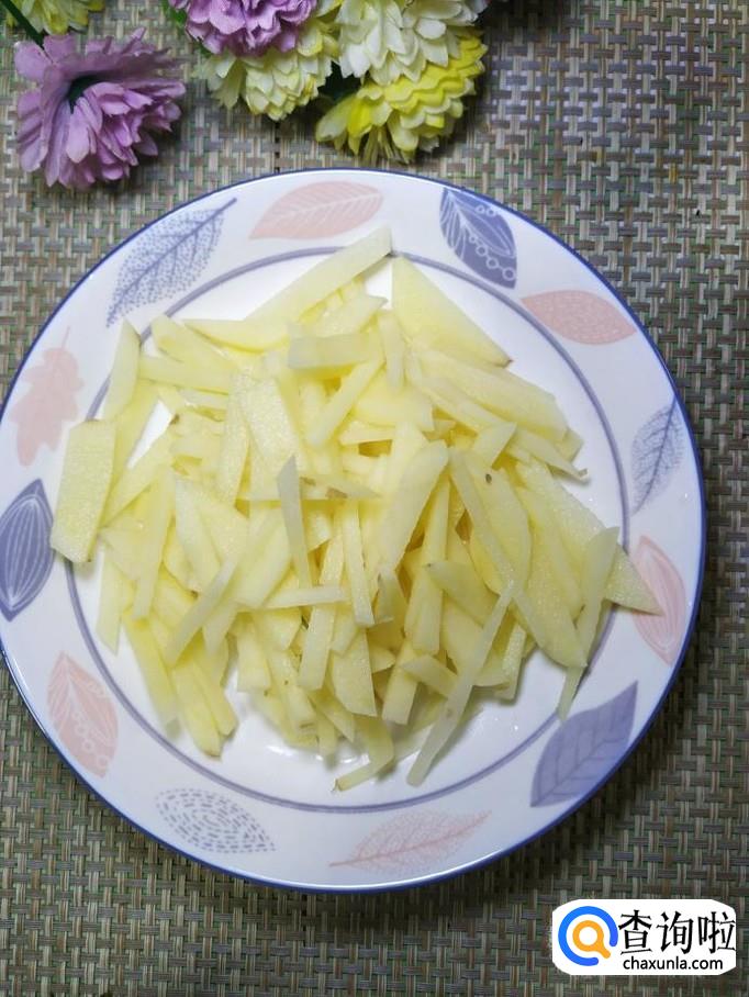 准备适量土豆洗净,去皮后,切成条,洗去淀粉,放入盘中备用。