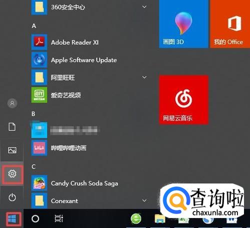 首先,我们打开我们的电脑,然后我们点击左下角的微软按钮,弹出的界面,我们点击设置;