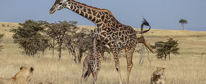 长颈鹿的蹄子力道极大,能踢死狮子。