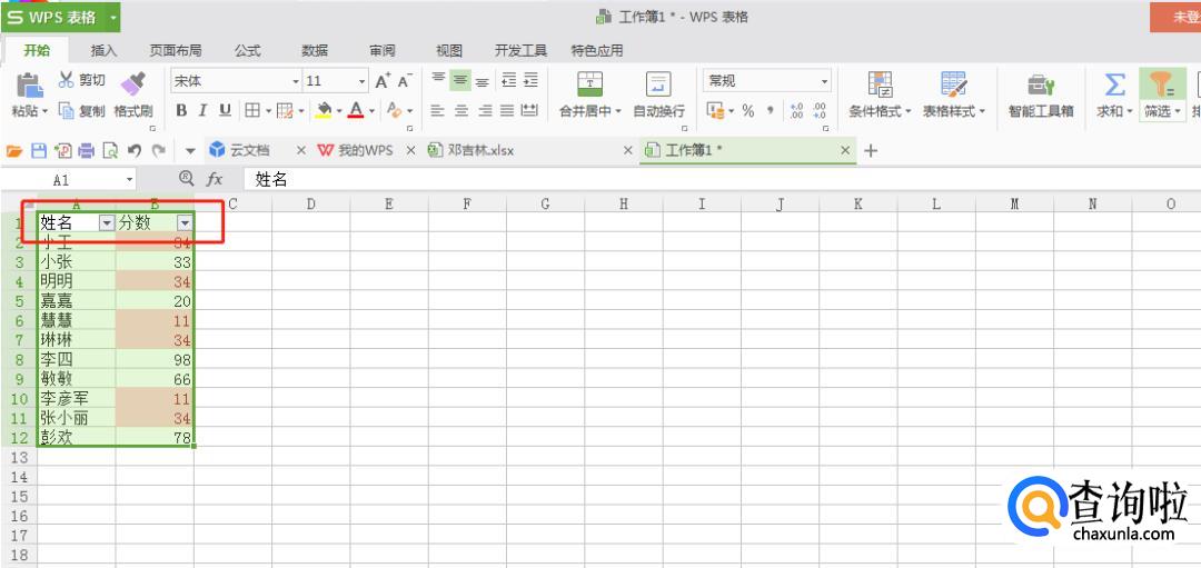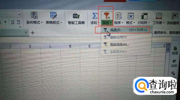 点击【开始】-【筛选】-【筛选】。