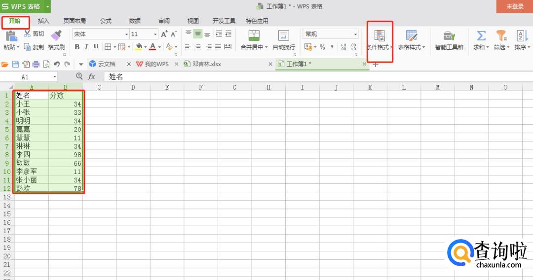 选中需要筛选的数据,点击【开始】--【条件格式】。