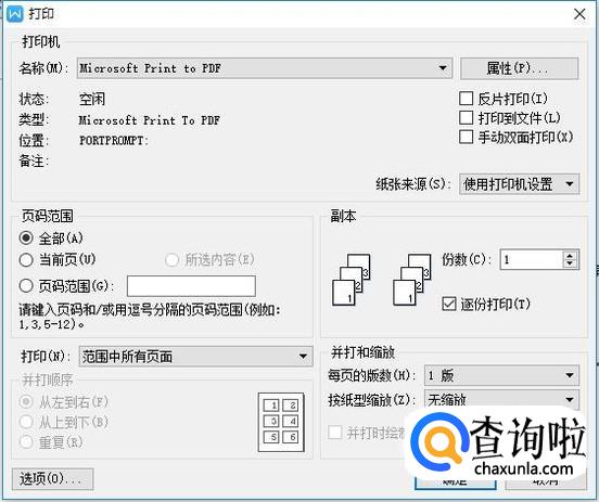 点击之后,进入打印设置,如图所示。