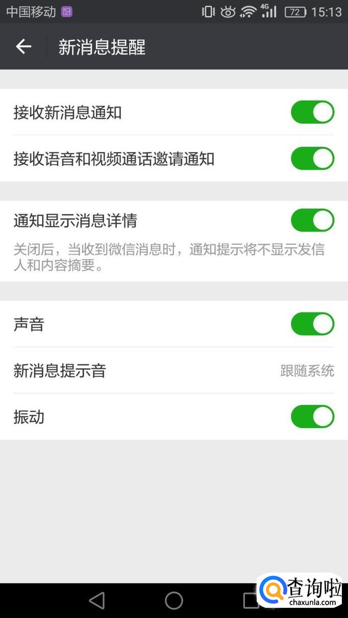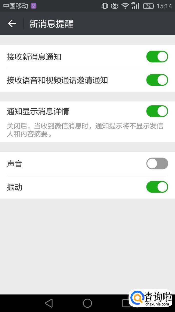 到了新消息提醒页面后,就可以看见我们微信消息提示音开起着。