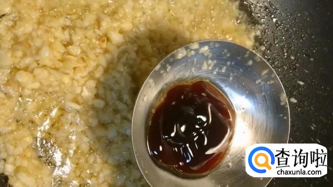 在锅中加入一勺植物油,油热后将蒜末加入锅中煸炒,爆香后加入半勺盐、半勺蚝油,翻炒均匀。
