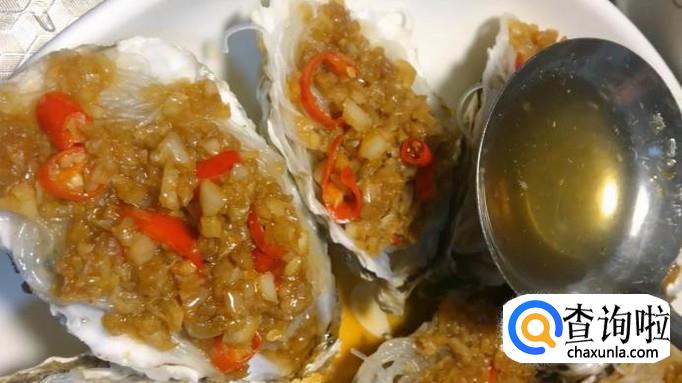 蒸好后取出生蚝,在每个生蚝中加入少许海鲜酱油,最后将烧热的油浇在生蚝上,蒜蓉生蚝就完成了!