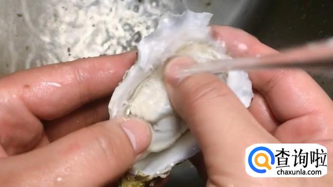 在海鲜市场购买2斤新鲜的生蚝,去壳后用水冲洗干净,装盘备用。