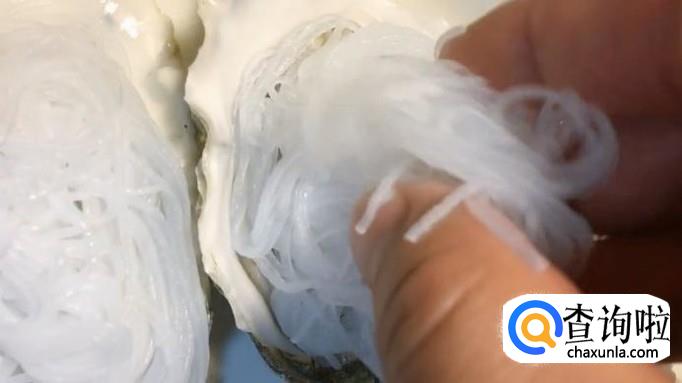 将准备好的粉丝泡软,泡软后用手摆放在生蚝上。