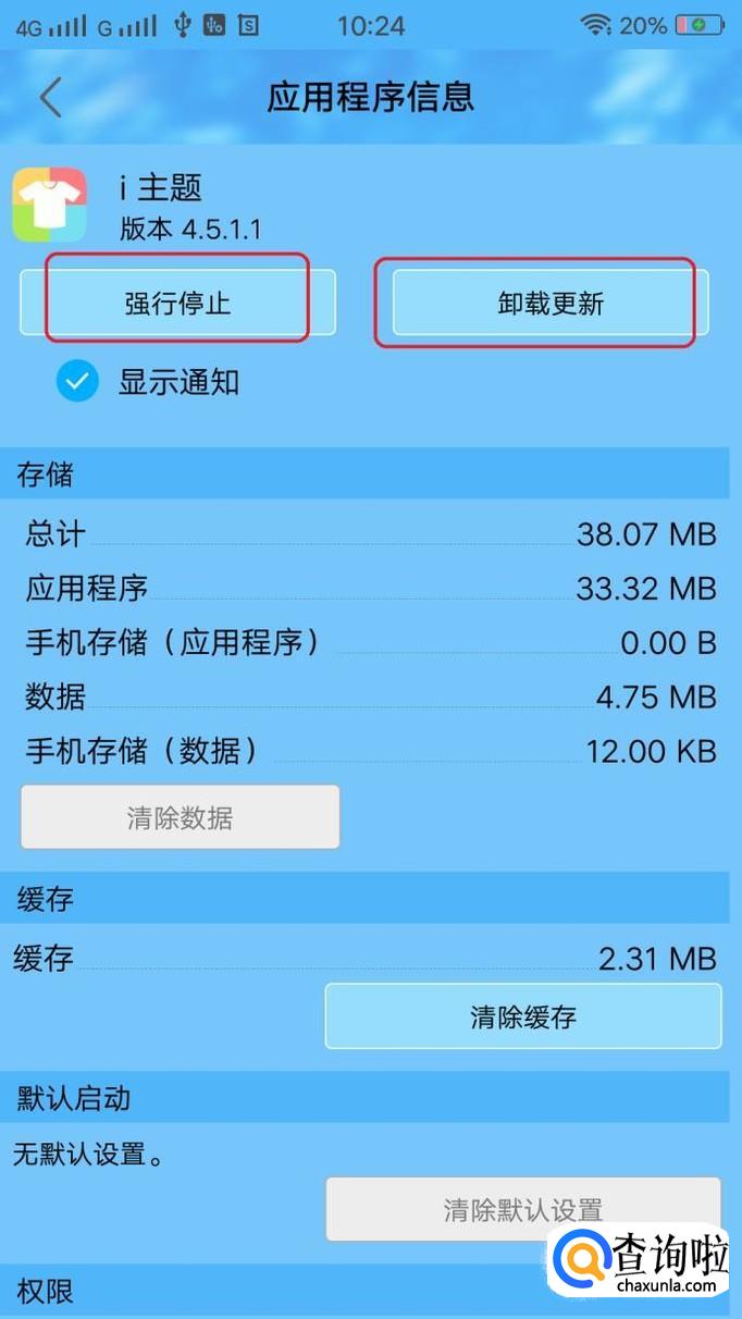 点击“卸载更新”,然后点击“强行停止”,就可以超过5分钟仍然继续试用该主题了。