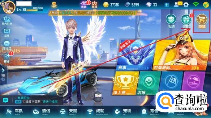 首先,打开QQ飞车手游,进入游戏大厅后,点击右上角的“商城”选项进入游戏商城。