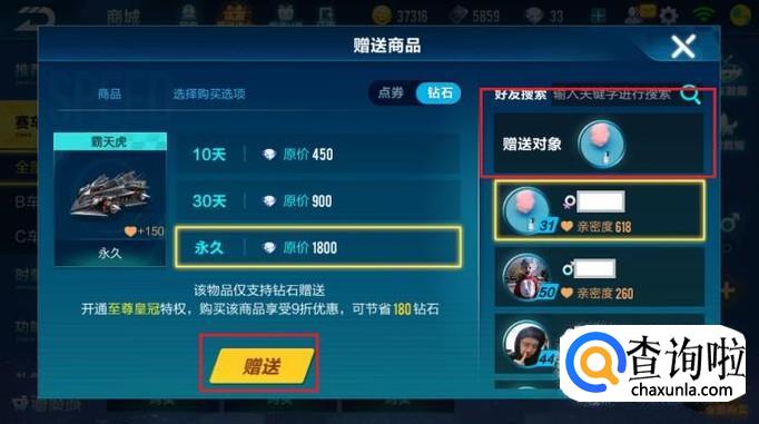 QQ飞车手游怎么赠送游戏物品给游戏好友?