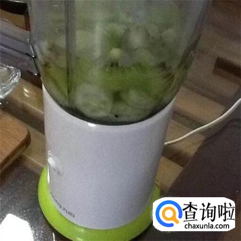 把切碎的猕猴桃倒入料理机中,打成猕猴桃果汁。