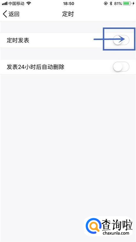 接着点击开启定时发表开关,如下图所示。