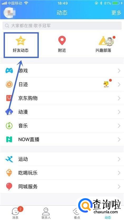接着点击好友动态,如下图所示