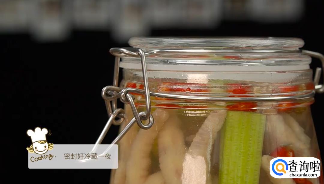 将鸡爪逐个放入密封罐中,盖上盖子,密封好,放进冰箱冷藏一个晚上。