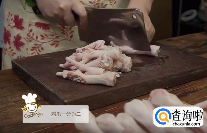 首先,把鸡爪洗干净,然后切成两半。