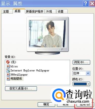 之后单击鼠标右键打开属性,对电脑桌面进行设置,最后点击应用即可,快来试试吧!