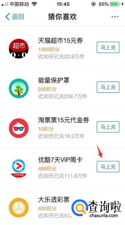 然后我们一直往下拉,直到看到优酷会员的兑换就点击进去。