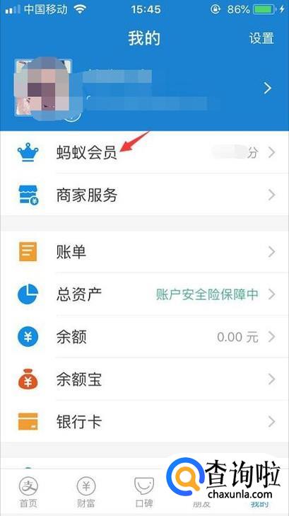首先我们先打开支付宝登录账号,在我的页面里进入到蚂蚁会员功能。