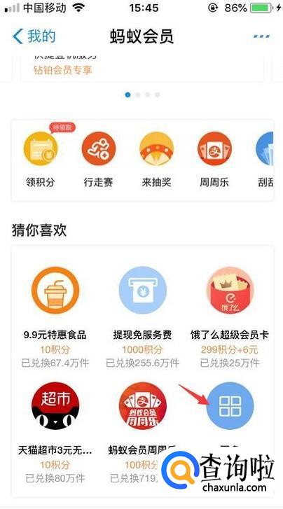 在蚂蚁会员的页面里,我们先在猜你喜欢那里点击更多。