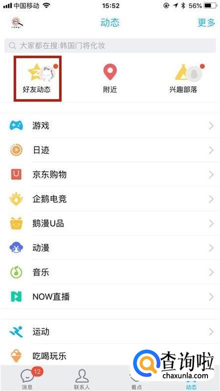 接着点击好友动态,如下图所示。