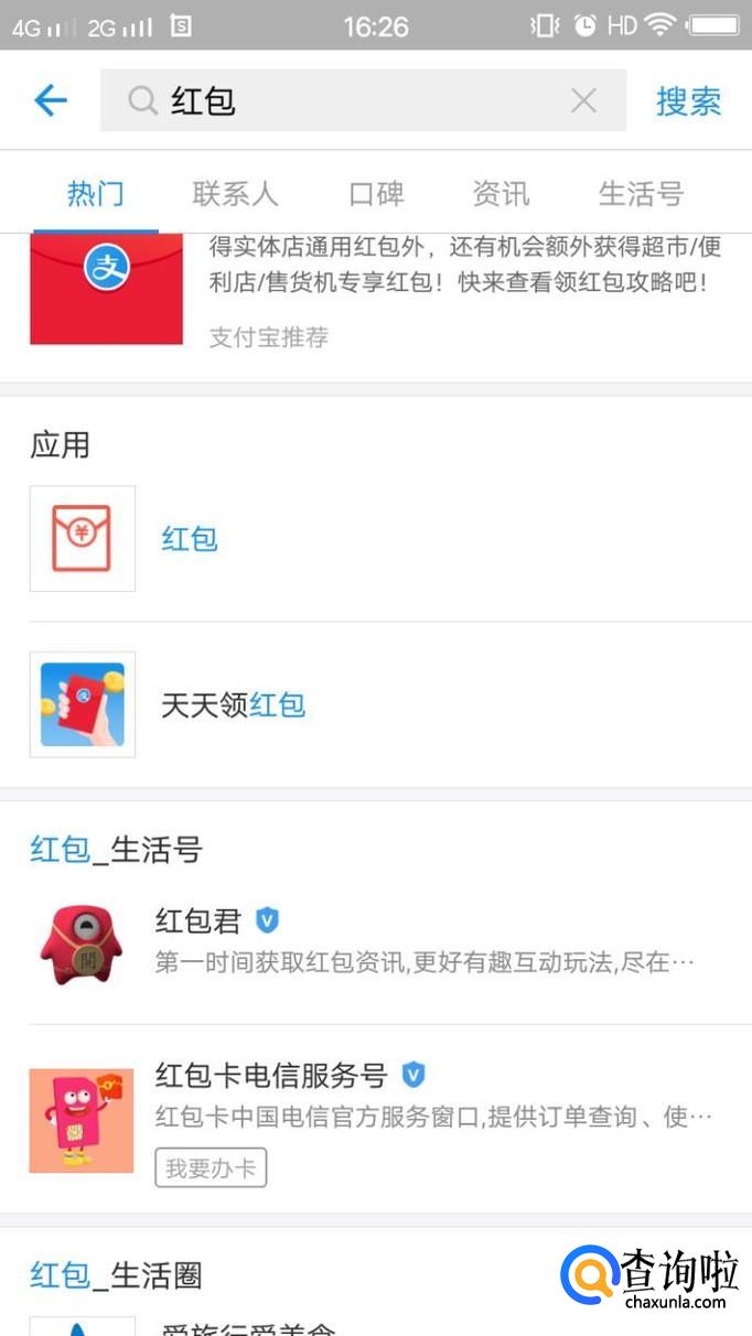 在“搜索”中输入红包,下滑找到“天天领红包”功能键,点击进入。