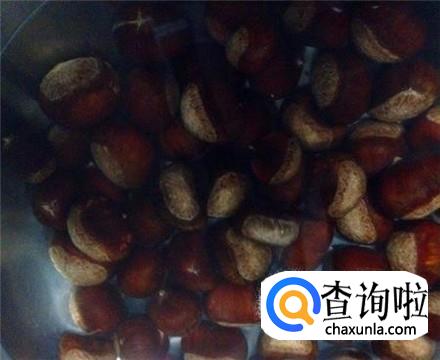 没有油花的锅里面加上清水和一些食盐,烧开之后把板栗放进去,这样煮三分钟。
