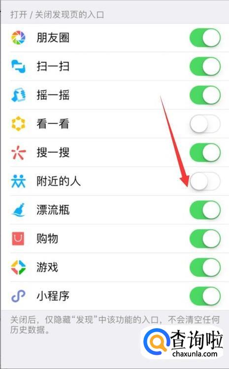 进入之后,你会看到有很多的功能,然后找到附近的人,勾选。