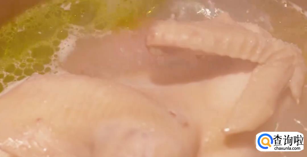 母鸡洗净,放入沸水中焯水,片刻后捞出。