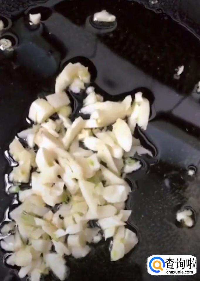 然后,我们在锅中留少许的底油,放入蒜末炒香,放入适量的生抽,酱油,蚝油,白糖