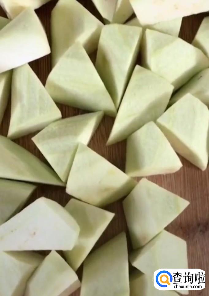 首先,我们将茄子切成滚刀块备用