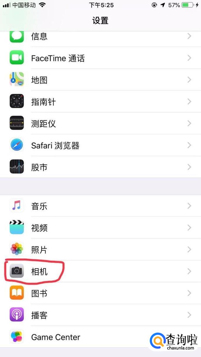 打开系统的“设置”,找到“相机”打开