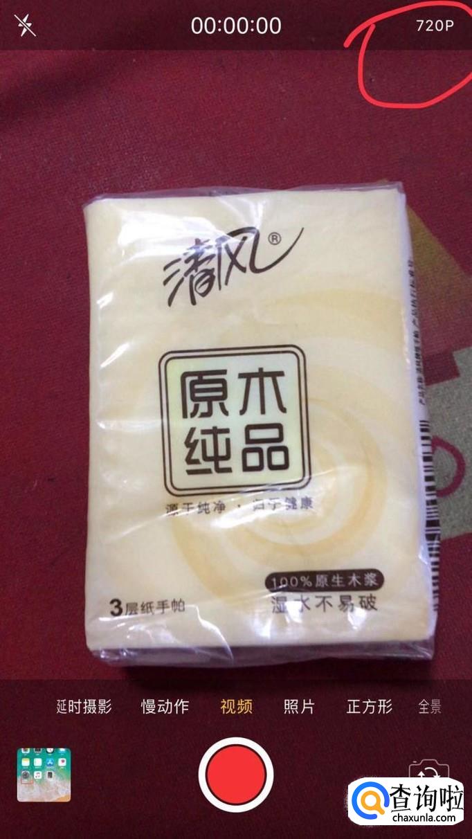 首先打开手机相机选择“录像”,可以看到右上角现在显示的是720P。那我们怎么设置为高清的4K像素录制,请看下一步。