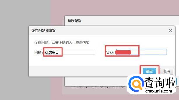 弹出的界面,我们输入问题,然后输入密码,之后点击确定就可以了。