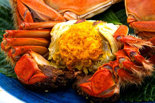 螃蟹烹饪方法有许多,但是最原汁原味的的吃法莫过于清蒸了。但看似简单的清蒸螃蟹,也有很多学味,很多人不是蒸老了,就是蒸不熟。根据螃蟹的大小,小一点的蒸12分钟就可以,稍大一点的蒸15分钟,以螃蟹壳完全变红为煮熟标准。但也不要蒸时间太久,时间久了,螃蟹肉就会变老发柴。