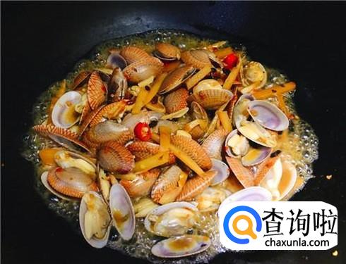 花甲全部张口之后说明花甲熟了,这时候用水调一点点淀粉,直接倒进去,大火快速翻炒几下出锅就可以了。喜欢吃辣的朋友,里面加上几个干红辣椒也可以。
