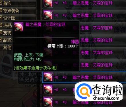 首先是武器、上衣和下装部位,这三个部位我们可以选择增加物理攻击力和力量的附魔宝珠,例如巨腕王子、魂:虫王、暗之恶魔等,而最终的毕业附魔则是使徒卡恩宝珠。