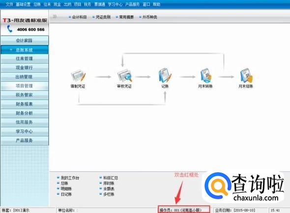 在用友T3界面上,点击总账按钮,然后点击审核凭证。