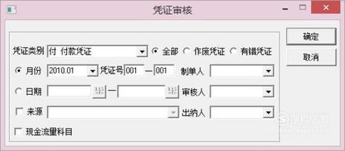 设置条件,选择凭证类型和凭证号,以便我们快速找到我们所要审核的凭证。