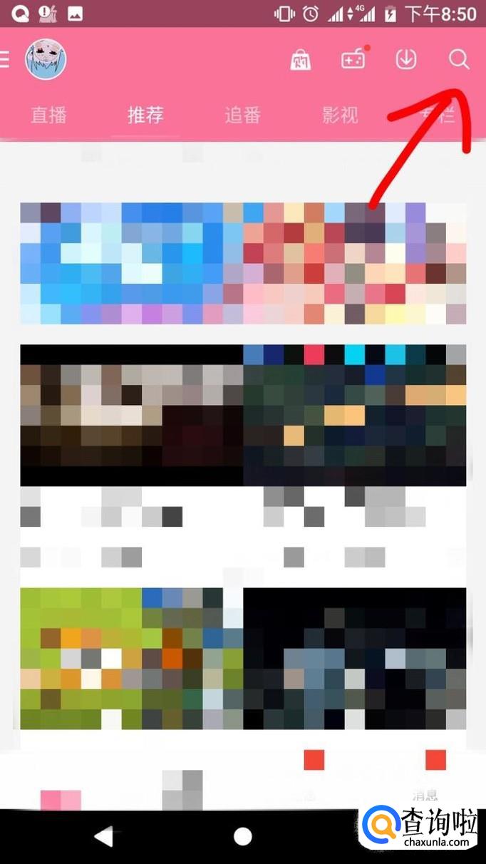 以后我们返回到软件的主页,然后找到右上角的搜索,点击进去。(就是软件主界面右上角一个类似于放大镜的东西)