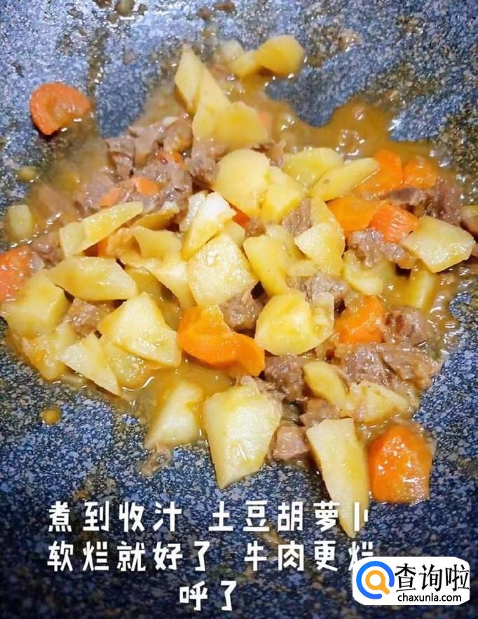 煮到汤汁浓稠开大火收汁就可以了,如下图所示。小贴士:土豆和胡萝卜一定要煮软烂。